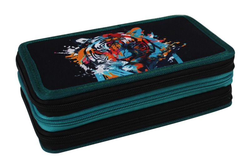 Pencil Case, 3-flap, motif tiger, filled, 43 pieces