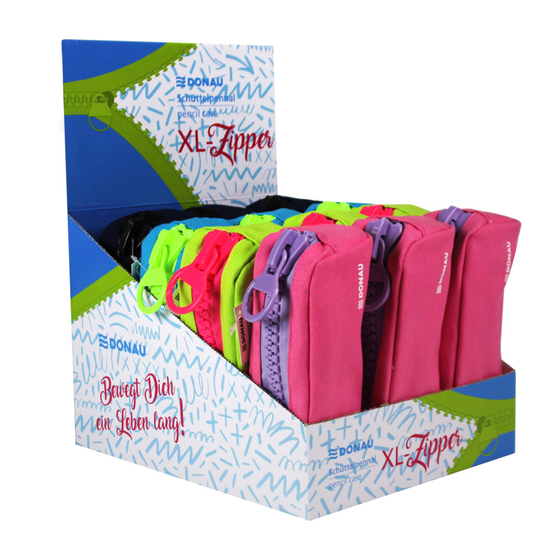 with a zipper, 2 color combinations assorted (blue-green and grey), carrying strap, material polyester, size 21 x 7.5 x 7.5 cm
