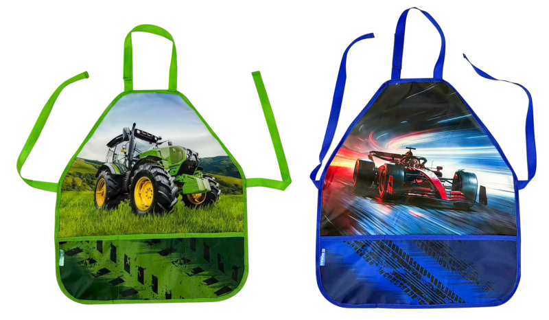 painting apron for children boys, tractor, racing car