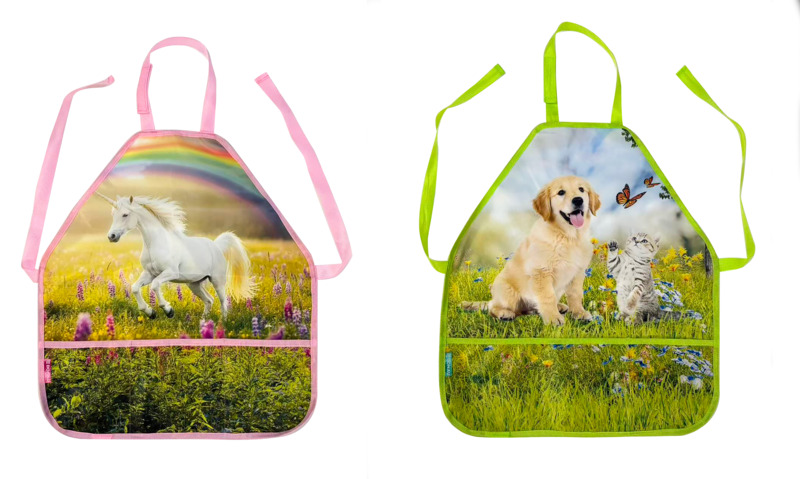 painting apron for children girls, unicorn, horse, dog, cat