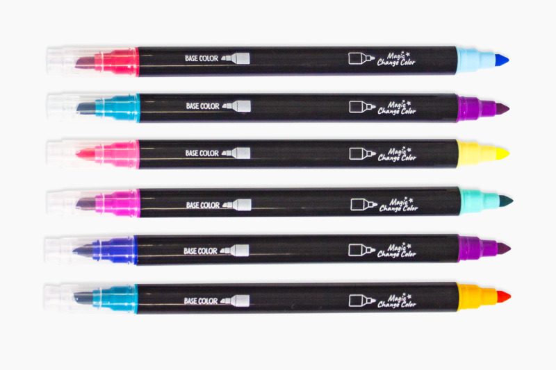Anschließend einzelne Wörter mit der zweiten Spitze übermalen, dabei ändert sich wie durch Zauberei die Farbe.