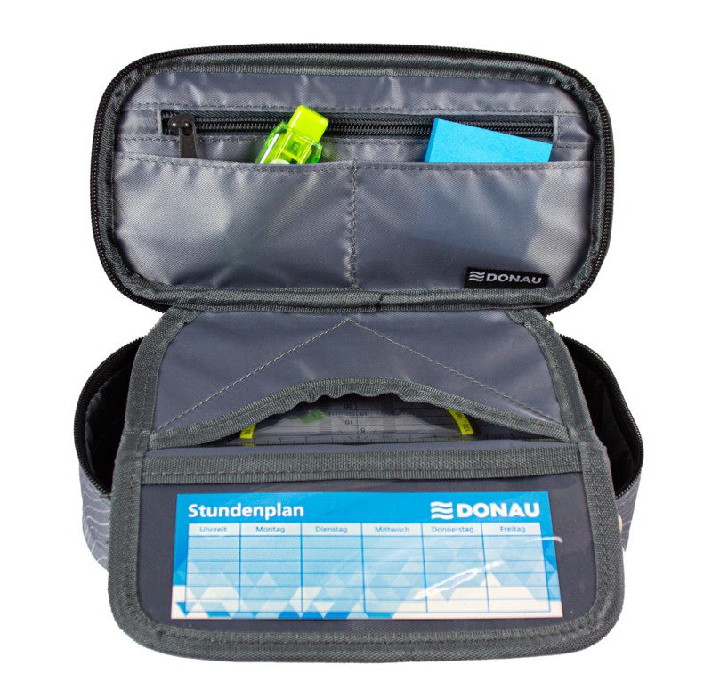 - Innenklappe mit Fach für Geometriedreieck, Sichtfenster für Stundenplan, 10 Stifteschlaufen,